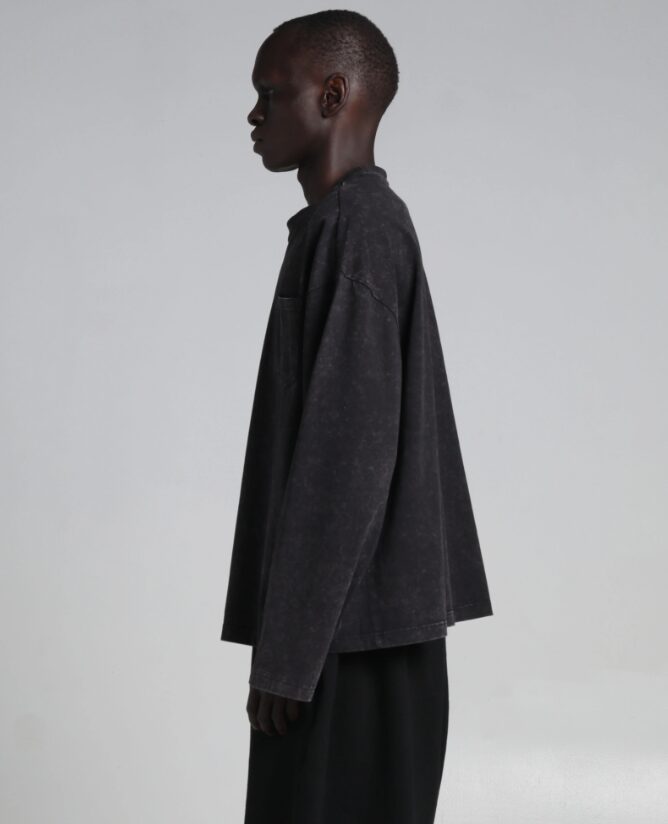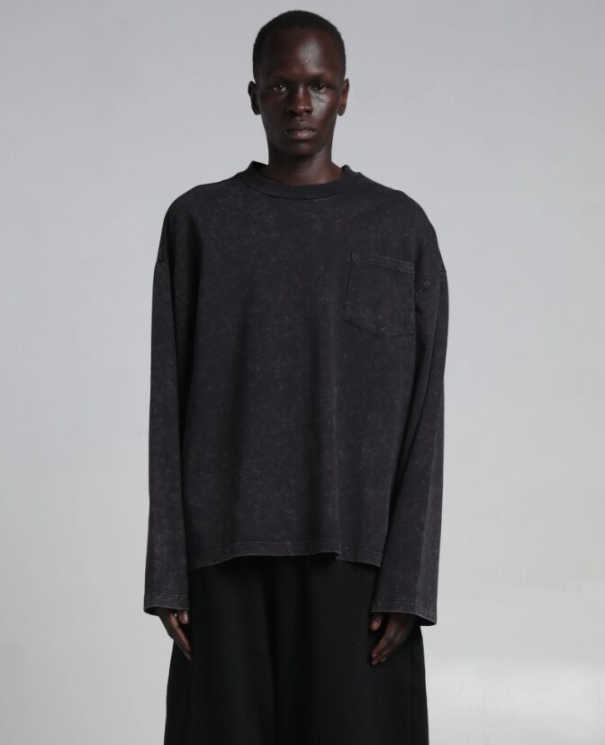 7.5オンスの厚手コットン生地に大胆なアシッドウォッシュ加工を施したAcid Wash Pocket Tee Long Sleeve。実用的な印象を与える胸ポケットが特徴です。