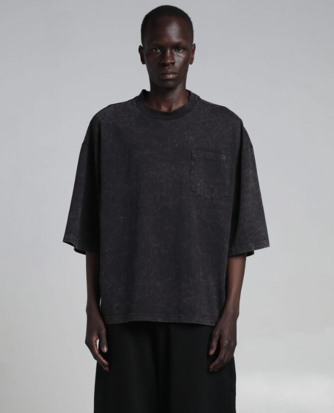7.5オンスの厚手コットン生地に大胆なアシッドウォッシュ加工を施したAcid Wash Pocket Tee Short。実用的な印象を与える胸ポケットが特徴です。