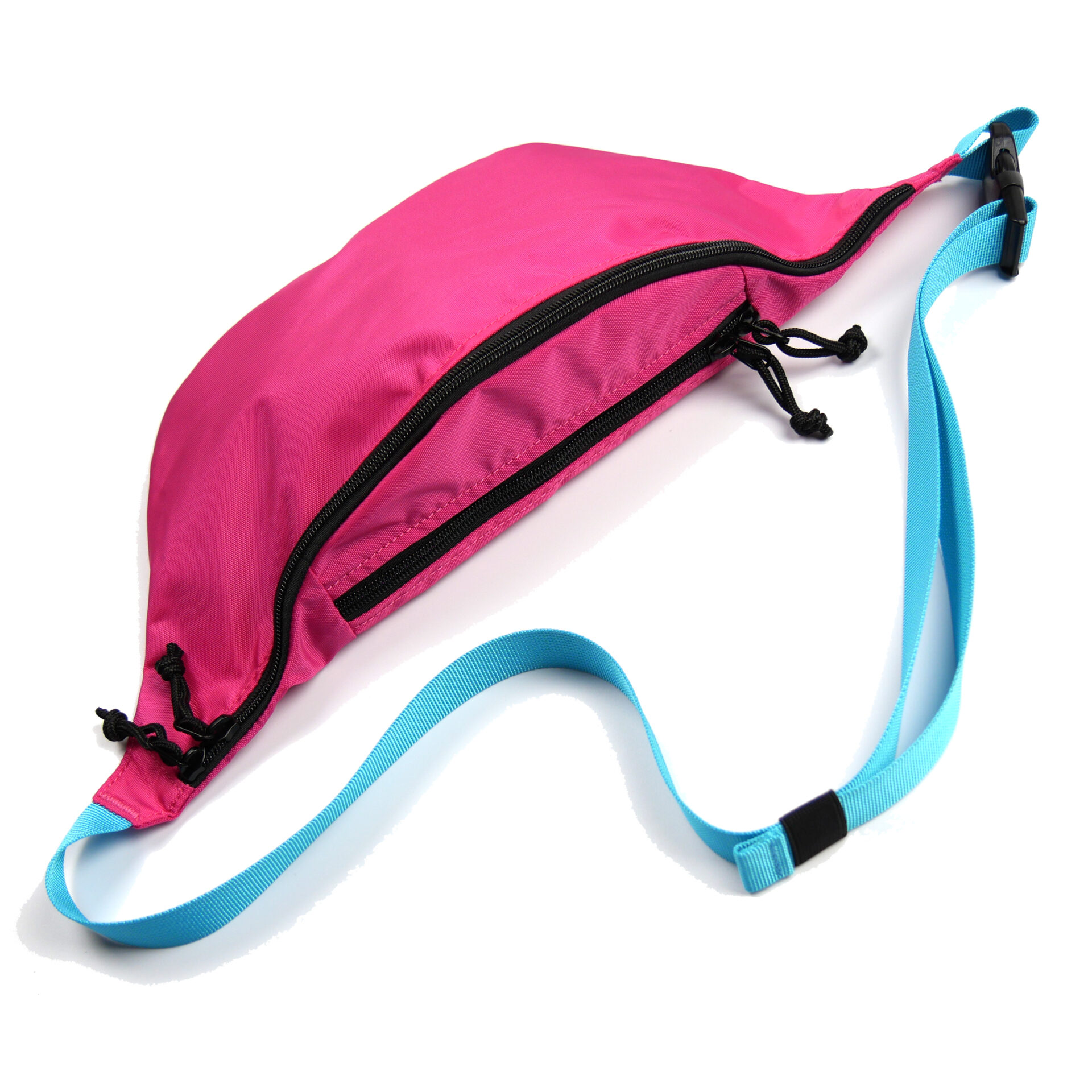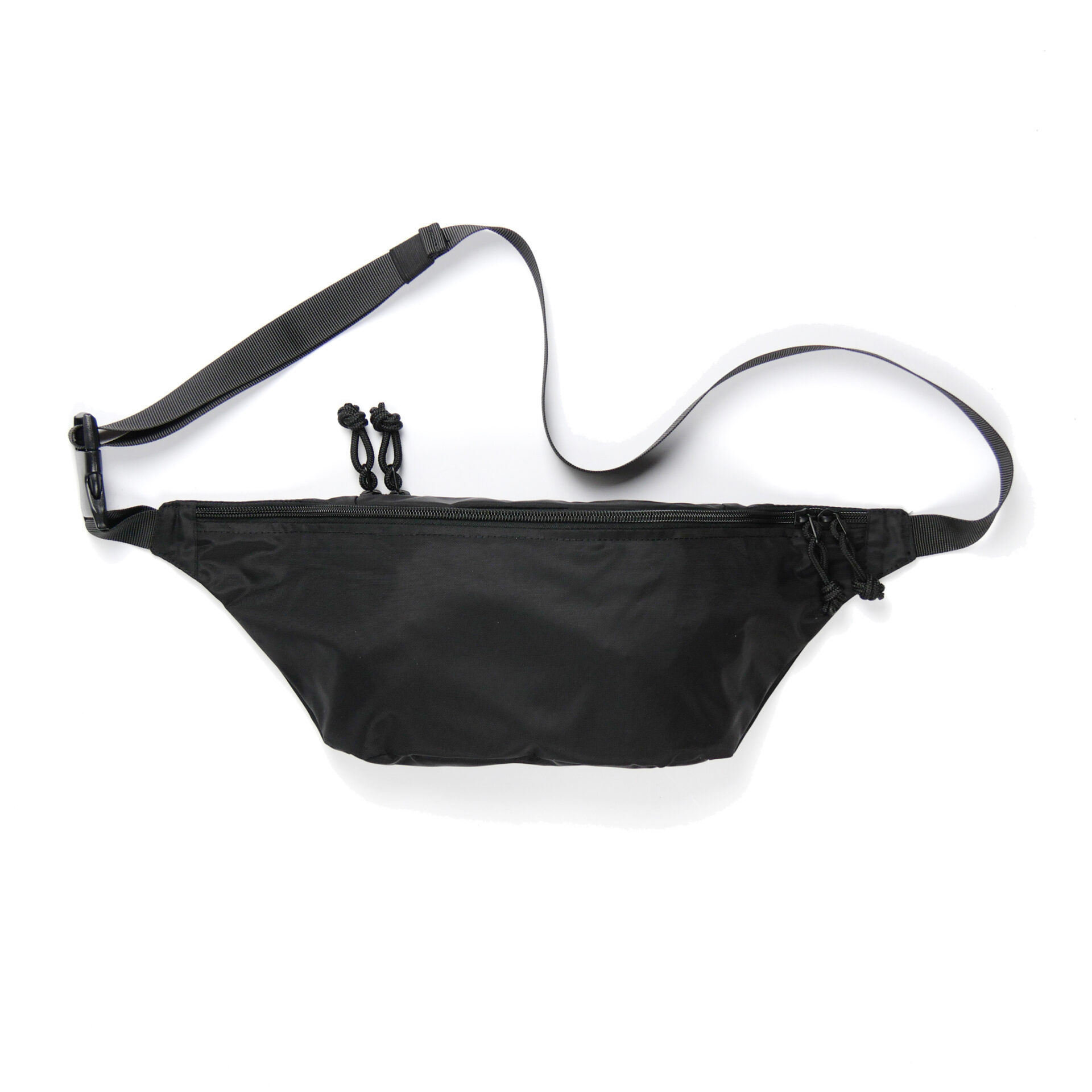 ・ボトルやタオルも収まるサイズのウエストバッグ。(46cm x 15 ㎝ x 6cm、容量約 1.1L)・適度の厚さと光沢の 420 デニールナイロン生地を使用。・⾧さが調節できるストラップ。・ジッパー開閉式メインポケット。内部にオープンポケット 1 ヵ所。・背面にジッパー開閉式のサブポケット。・メインポケットの開口部が広く、幅広いエリアに二次加工が可能。