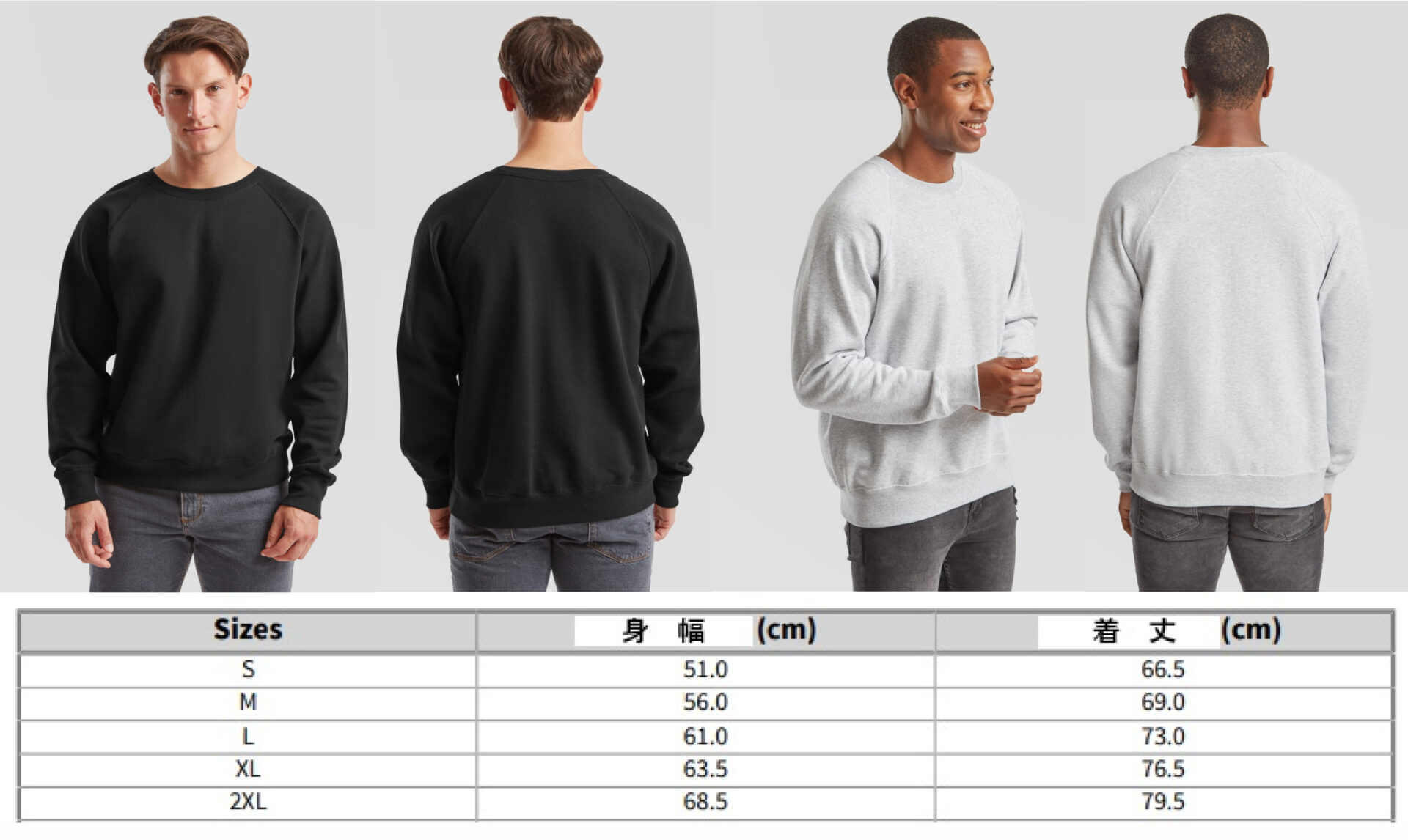 今年からFruits of the Room EUROPEClassic 80/20 Raglan Sweatshirtsが国内在庫品番としてスタートしました。